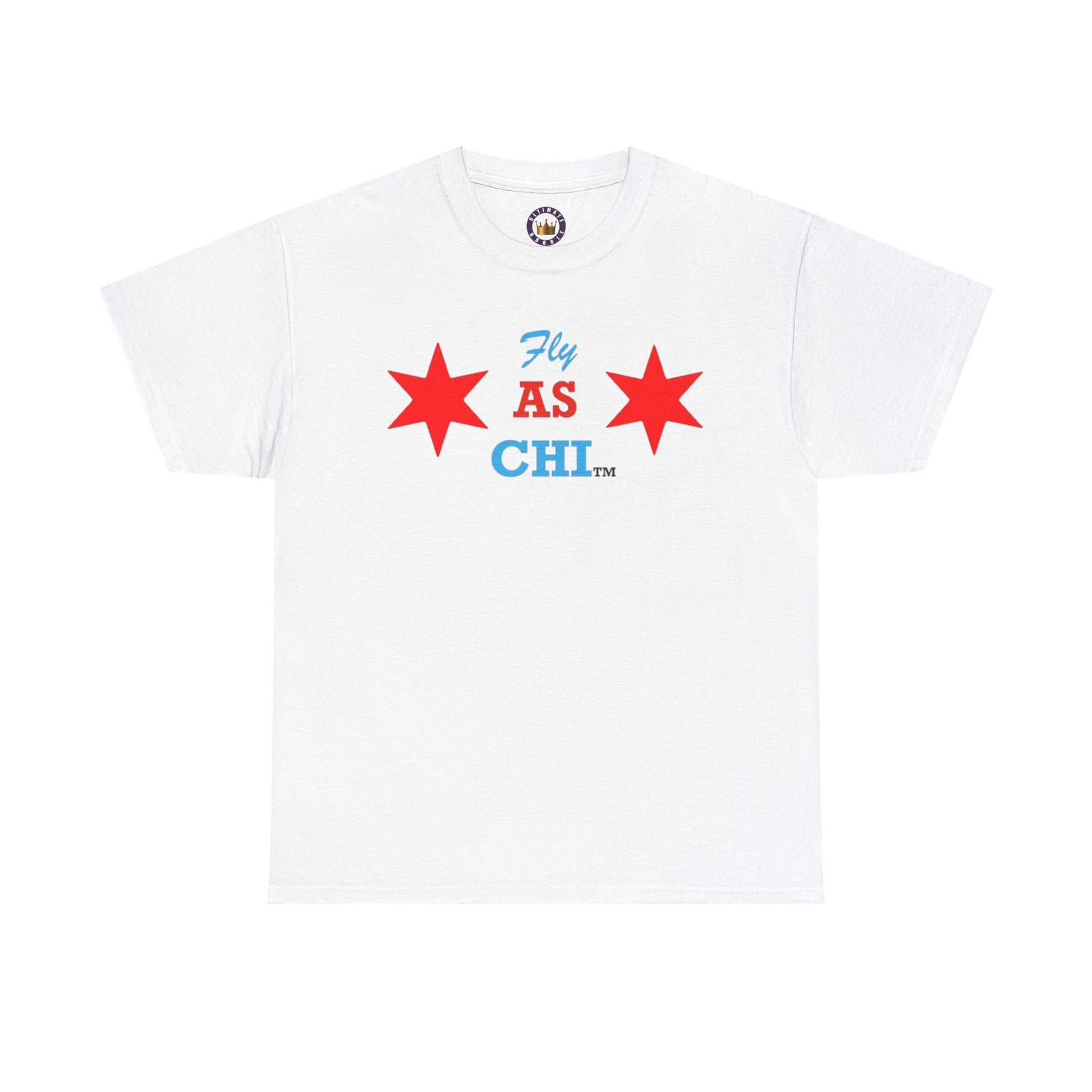 This Classic, Custom Designed Tee carries a confident, city-rooted vibe — clean and bold with two red stars flanking playful typography that reads “Fly AS CHI.” Mediumweight and sturdy, it layers easily beneath a jacket or stands on its own for crisp, casual looks. The relaxed crew neck and timeless cut make it a go-to for everyday wear, while the sharp print gives a subtle nod to Chicago pride and streetwise style. Wear it when you want a quiet, local flex that feels familiar and intentional.